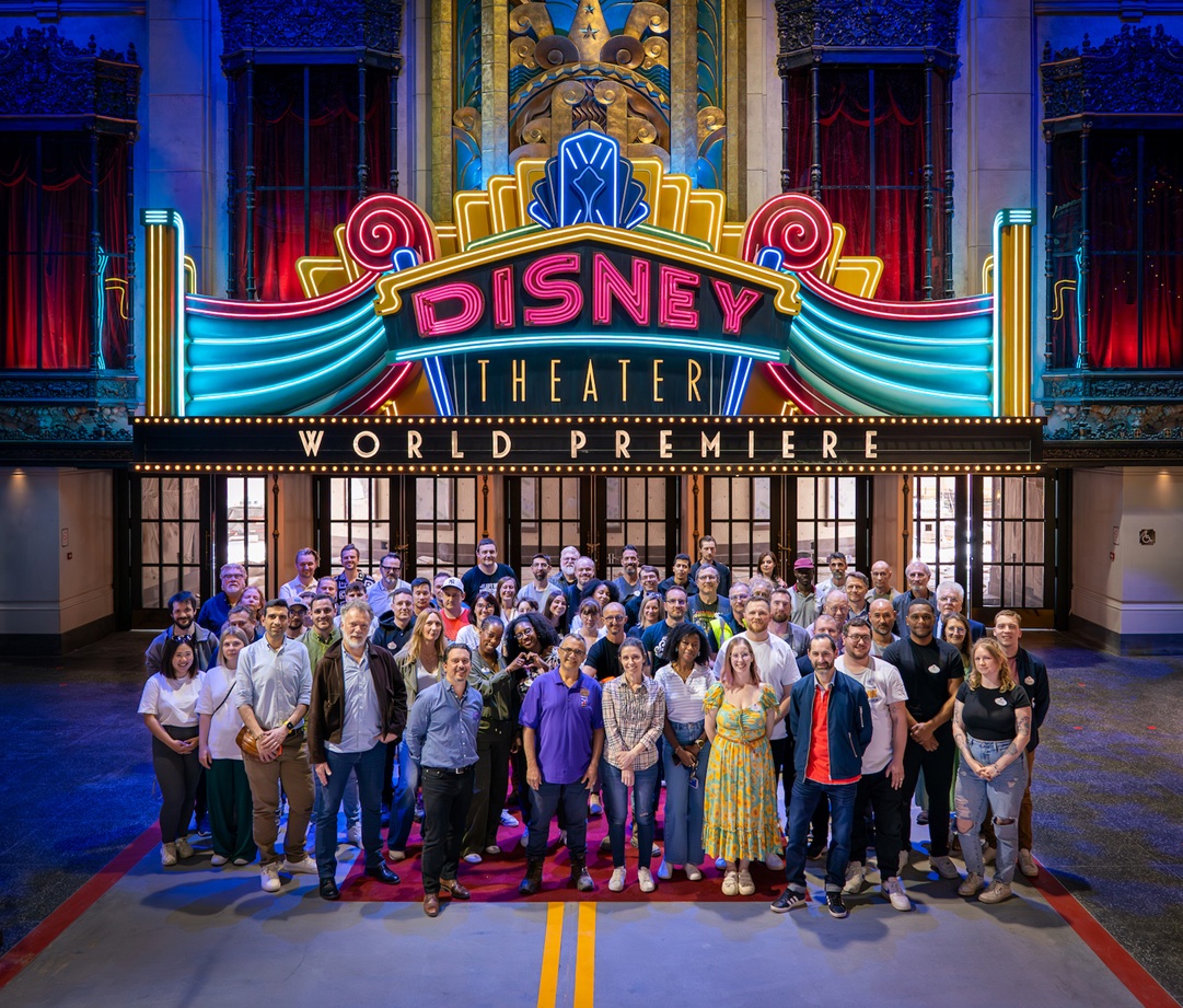 To celebrate the completion of this major project, Walt Disney Imagineering Paris teams gathered in front of the new Disney Theater neon sign to immortalize this symbolic moment.