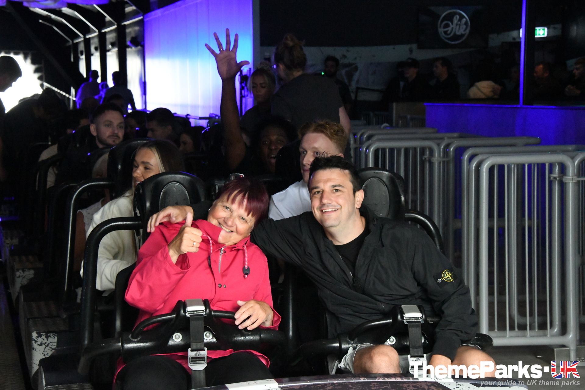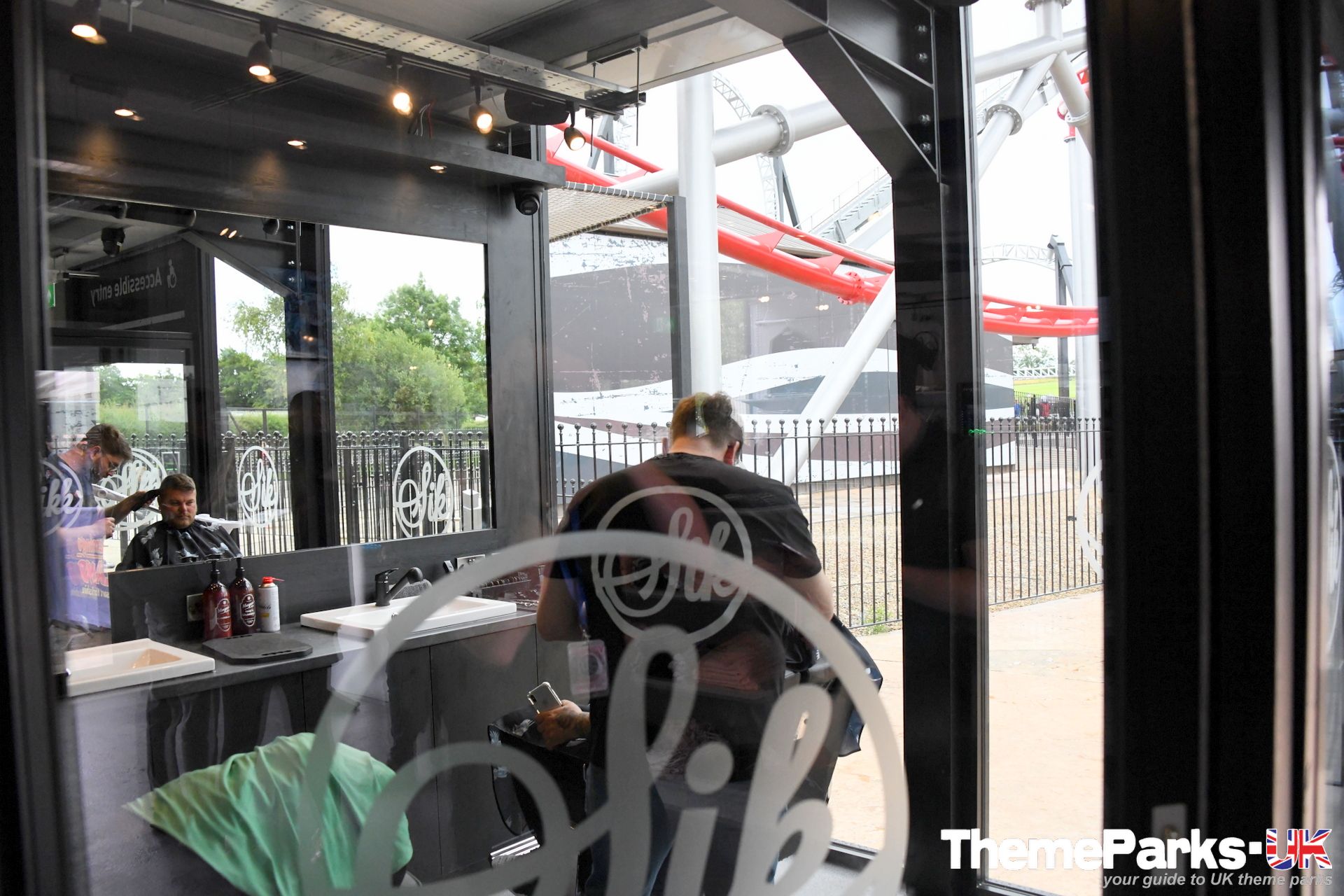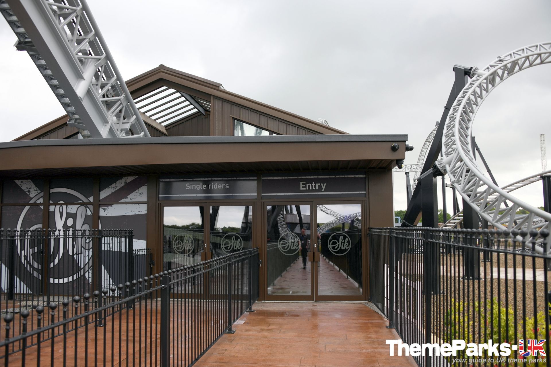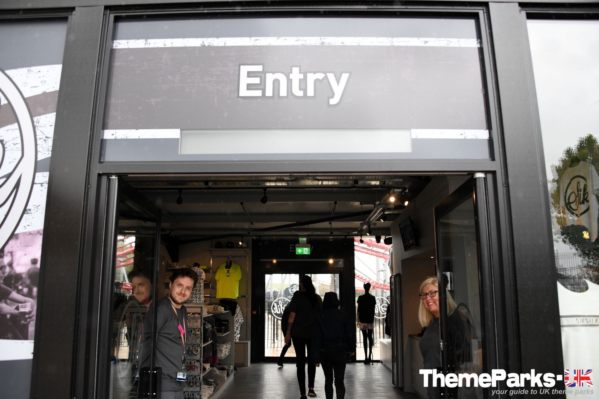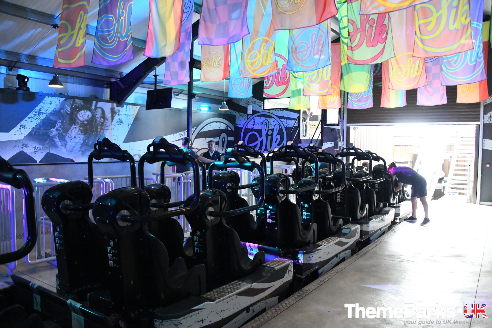 The entrance to the ride is located in the Flamingo 1 section of the park, on the other side of the adjacent launched roller coaster Velocity, passing a new Sik Games stall and through the Sik Shop. It's quite unusual to have a ride shop as both the entrance and exit to a ride, but this works well. The shop is well stocked with SikSilk clothing and a small selection of Sik branded merchandise. It even includes a barbers, if you fancy a quick trim while you're there!