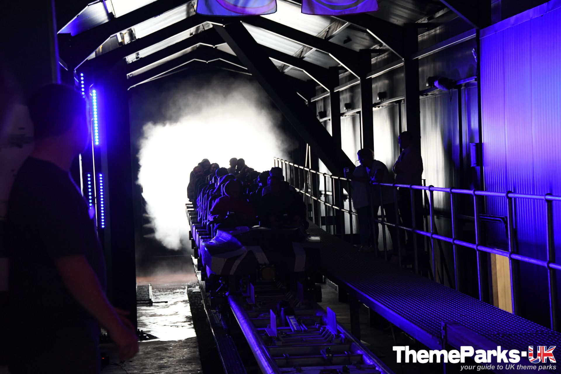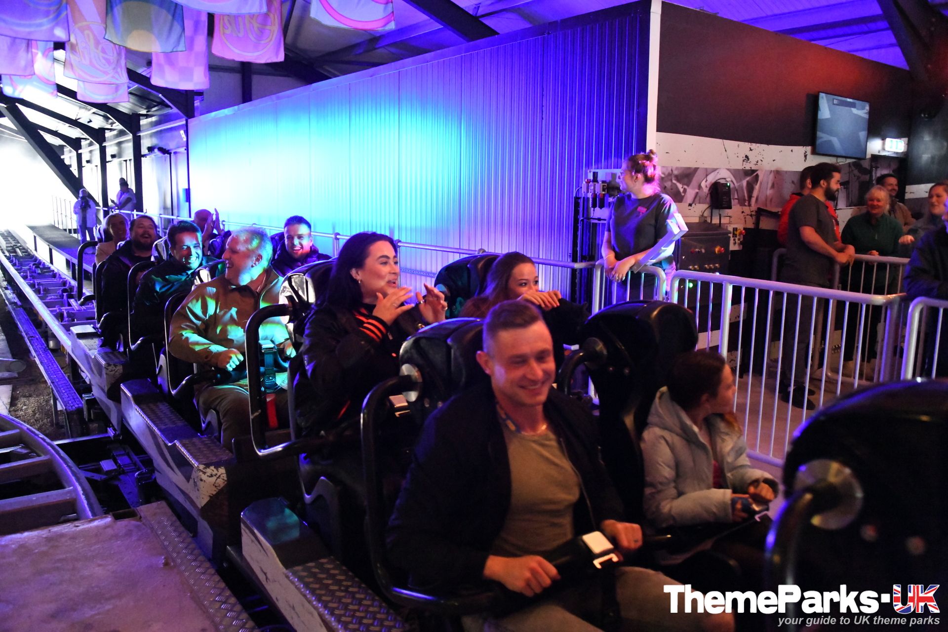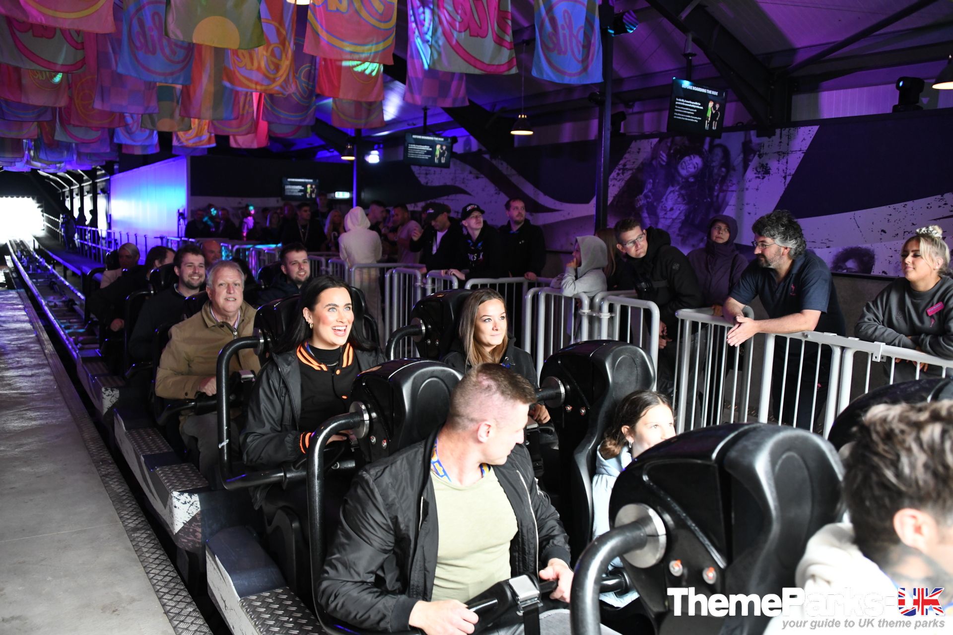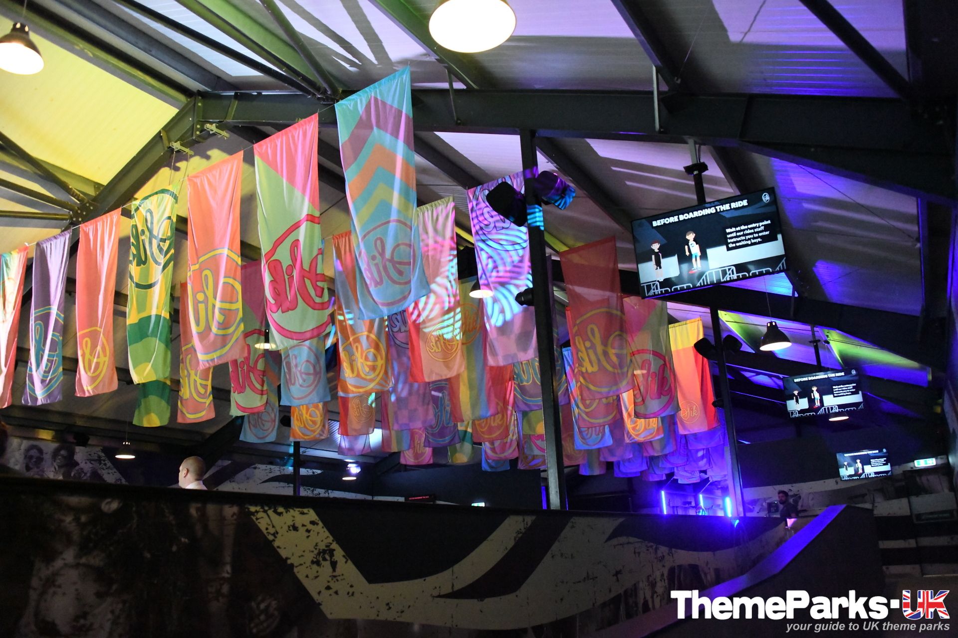 Modern and functional from the outside, and sporting a contemporary union flag design, the ride station has a club and festival vibe inside. The pumping dance music, colourful flags and dynamic lighting all create a brilliant atmosphere.