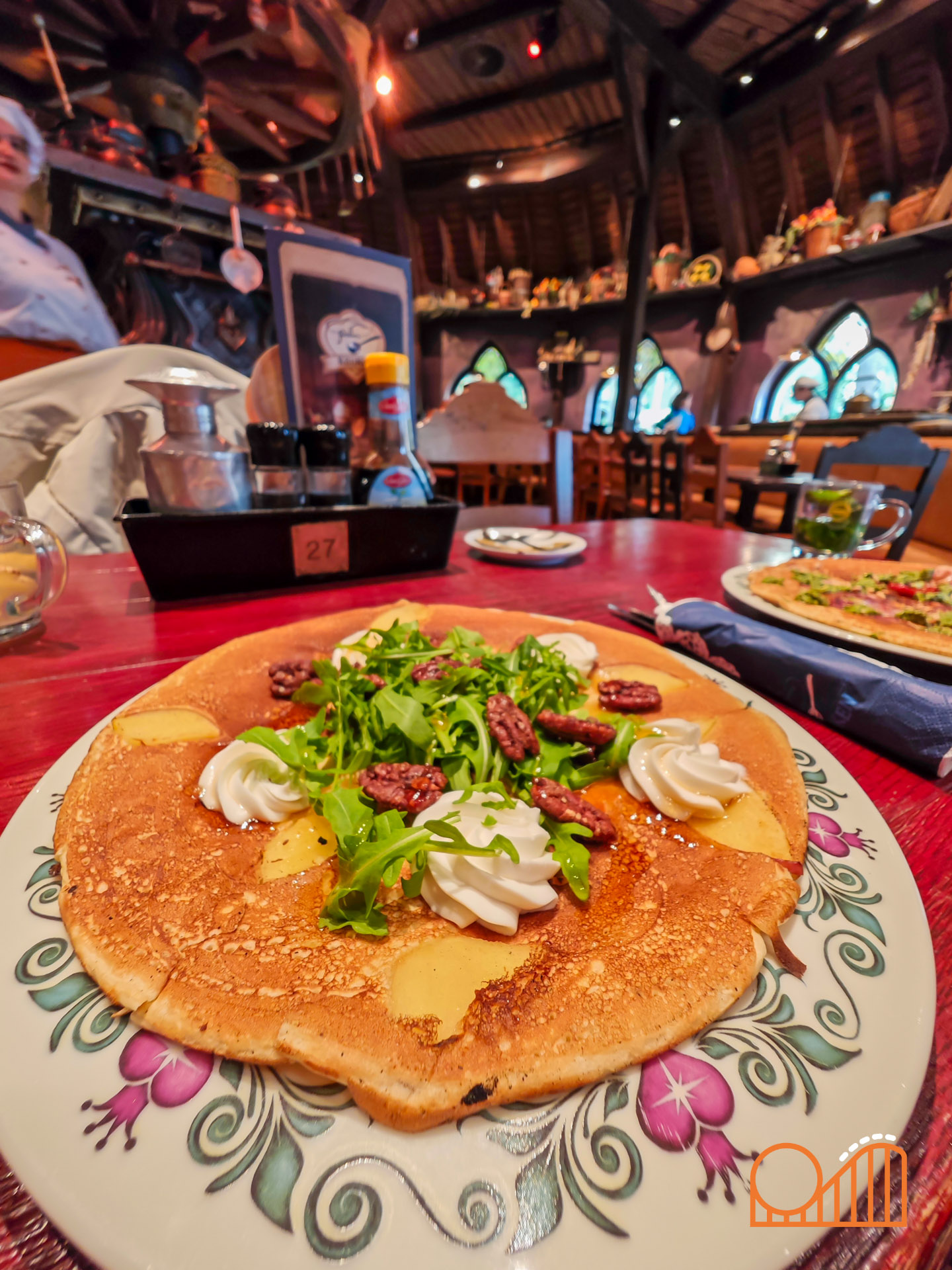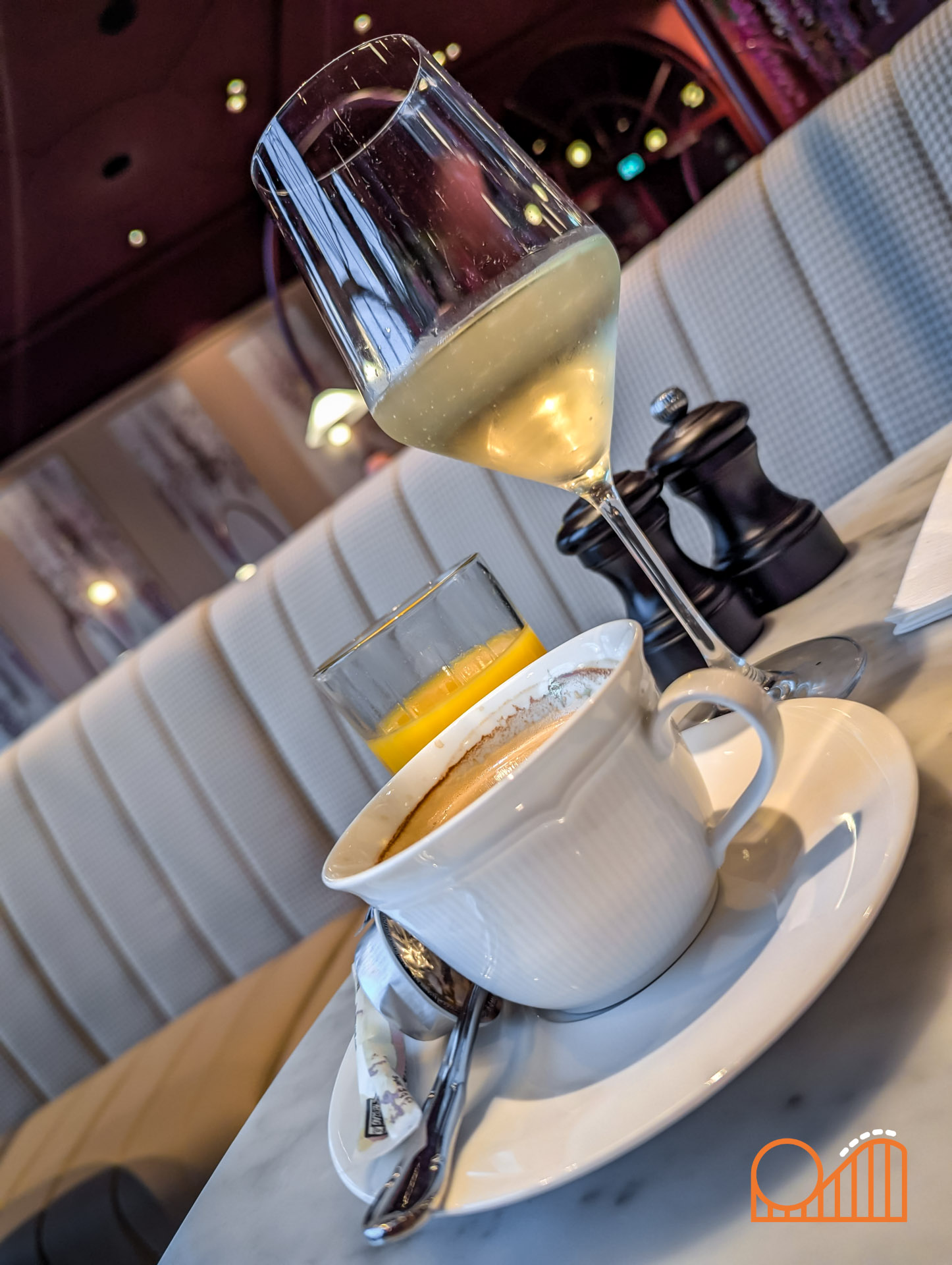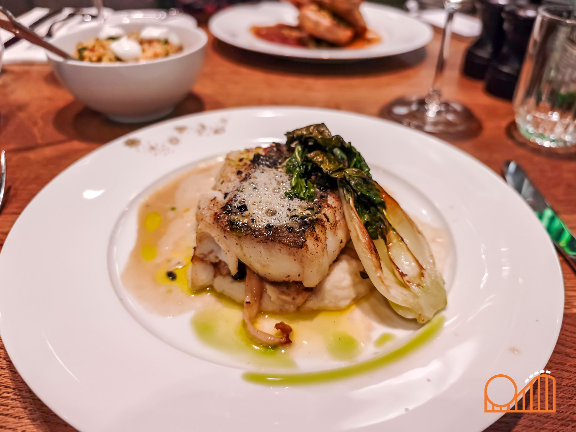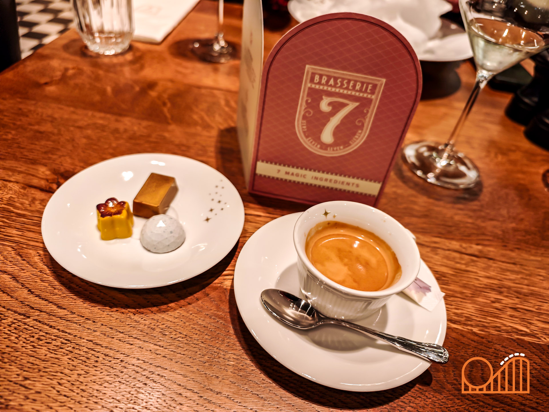 Our meal began with a Coquille Salad and French Onion Soup, followed by Crispy Cod and Guinea Fowl as mains. Dessert brought a delightful Sabayon crowned with cotton candy, alongside a coffee served with three magical bonbons. The meal, including a shared bottle of wine, came to €132 for two people, which felt like good value given the quality and atmosphere. Brasserie 7 is a stunningly designed restaurant, bright and elegant with a spacious conservatory and terrace that overlook the heart of Efteling. It actually feels more impressive than the smaller premium restaurant, Mystique, also located within the hotel.