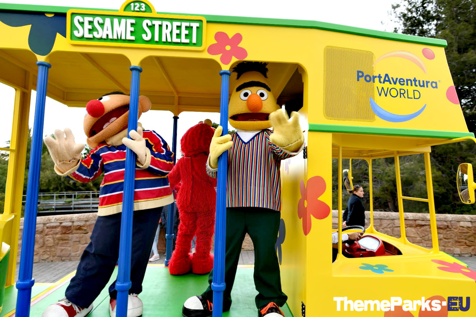 Some of the Sesame Street characters make an appearance in the PortAventura Parade which takes place at the end of each day. The yellow bus had Elmo, Bert and Ernie riding in the back on our visit.