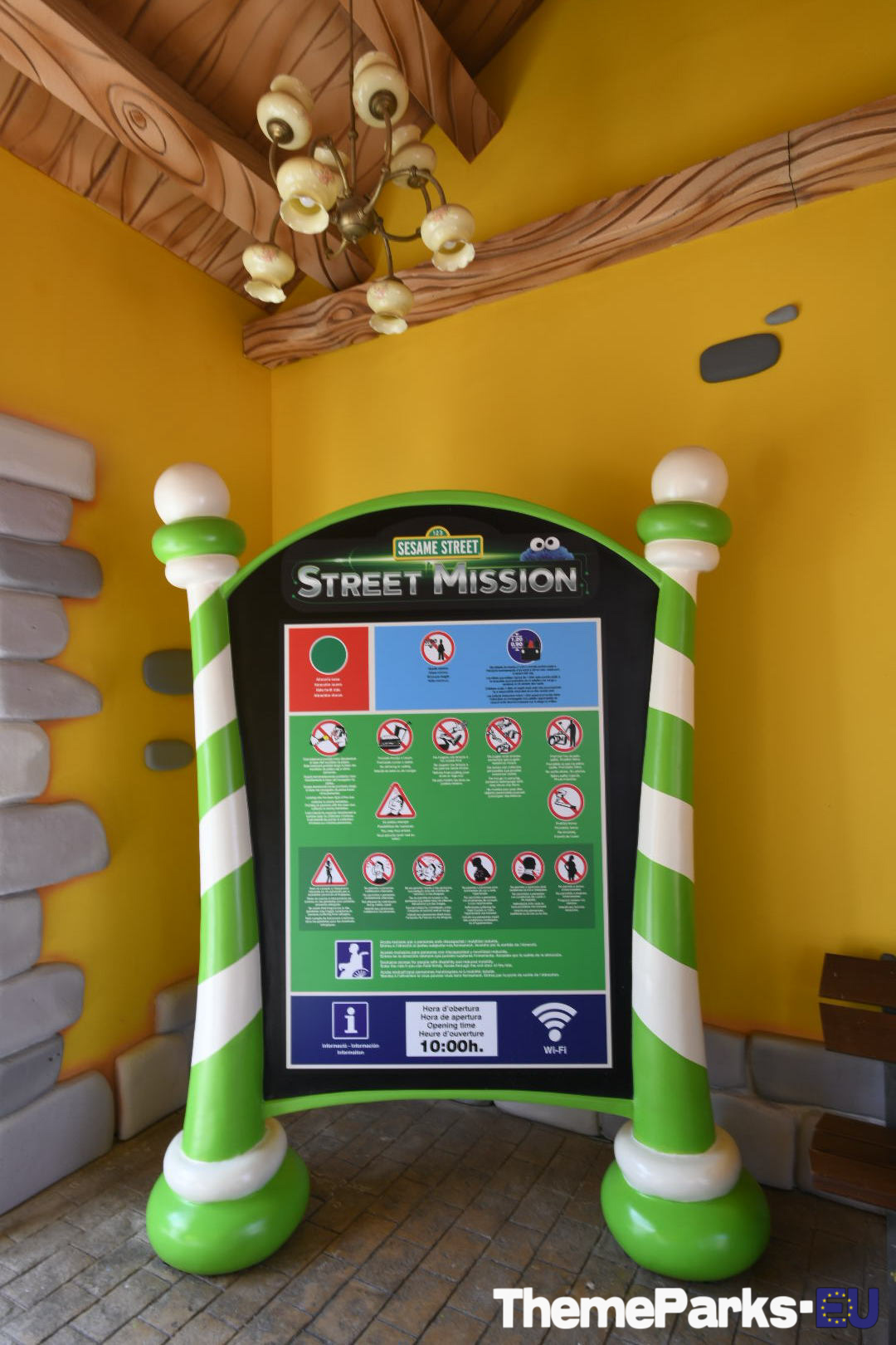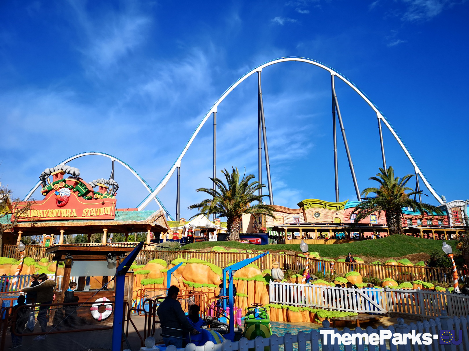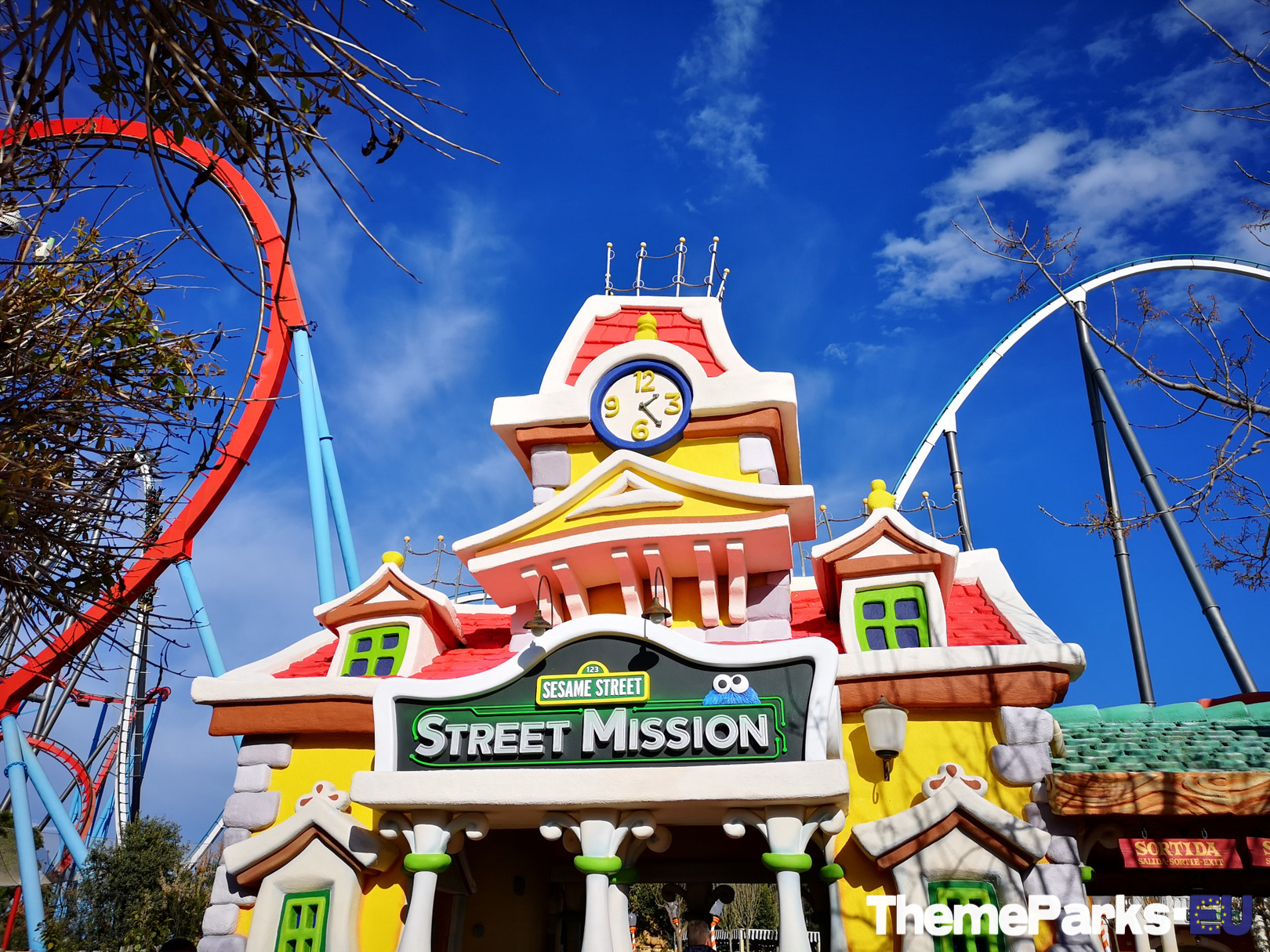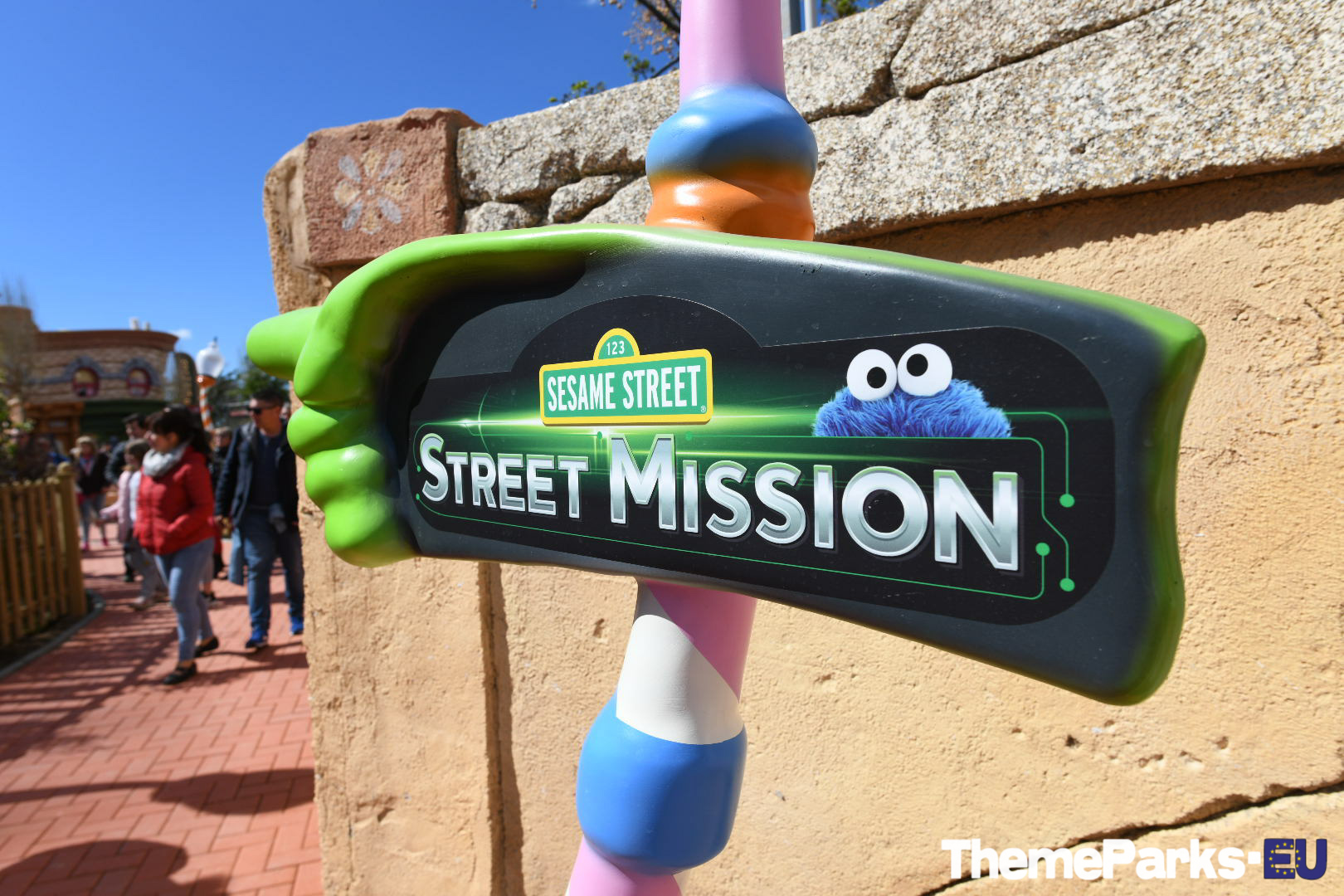 Street Mission has been incorporated into the existing SésamoAventura area seamlessly, with part of the area's train station transformed into an entrance to the new ride plaza.